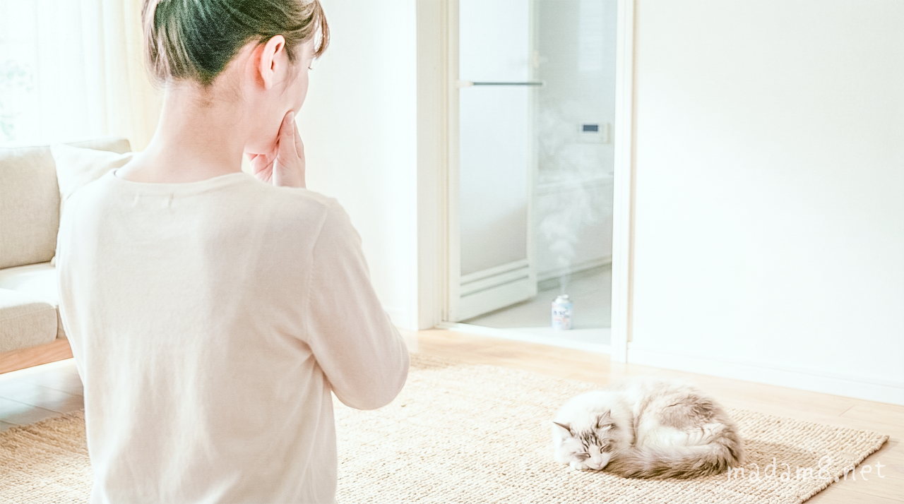 防カビくん製剤をたいているときは、猫はリビングにいて、リビングから外に通じる窓は(網戸で)開いている状態でした。