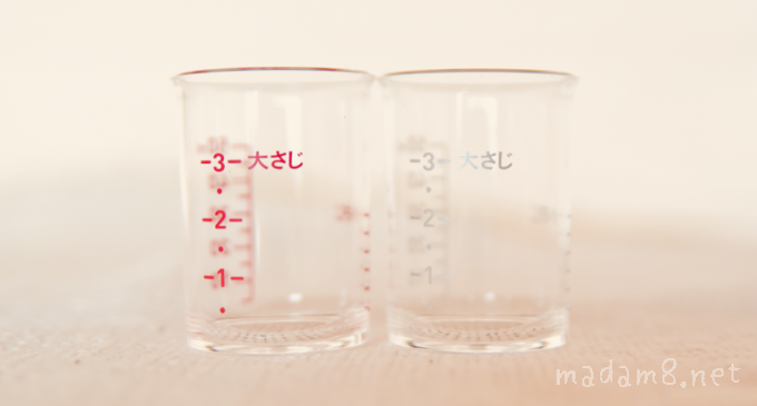 大さじ2・大さじ3が一気に計れるミニ計量カップが便利でおすすめ