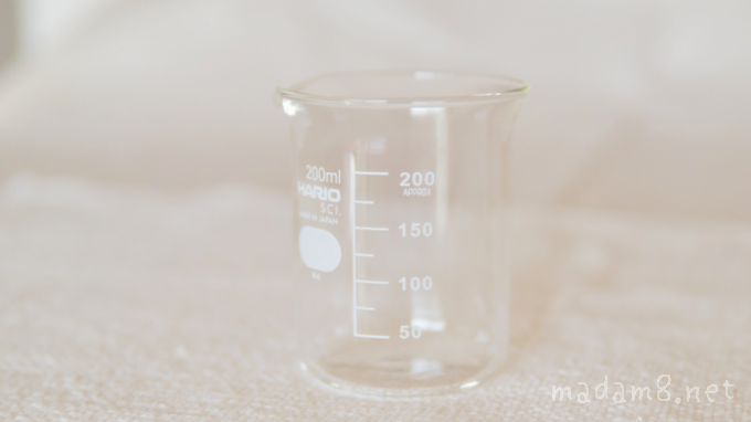 計量カップはビーカーで代用。白くてシンプルですっごくかわいい